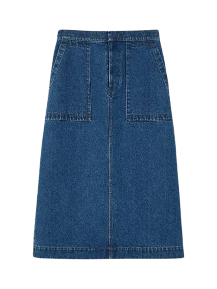 Denim Stitched Waist Midi Vintage Mid Blue Skirt