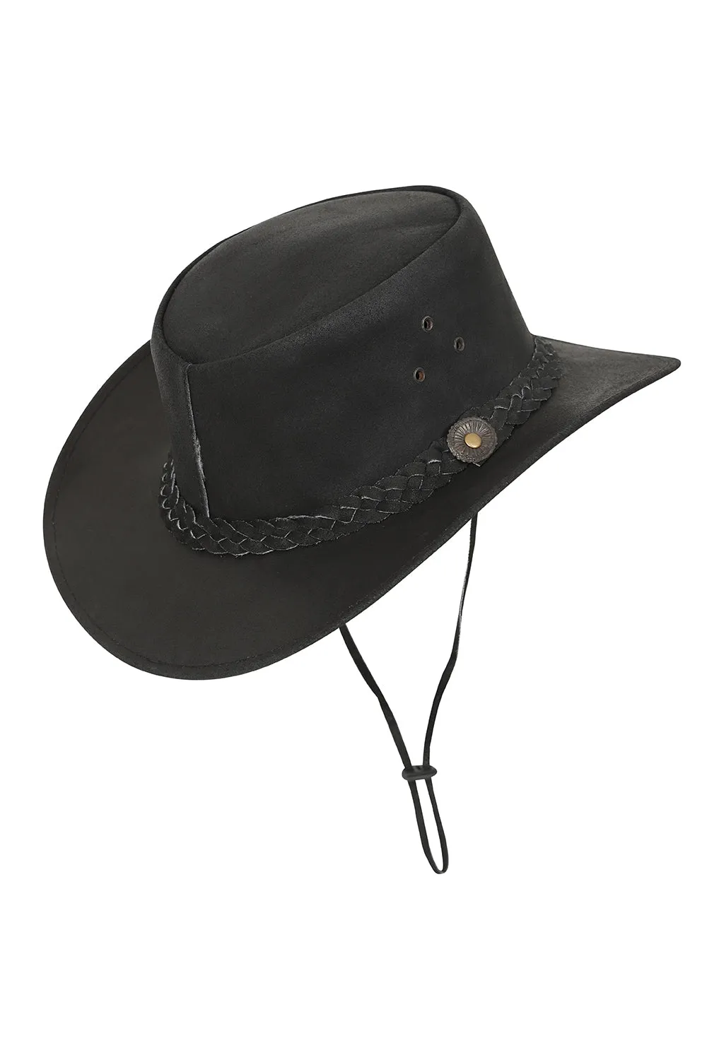 Genuine Black Cowhide Leather Cowboy Hat quantity