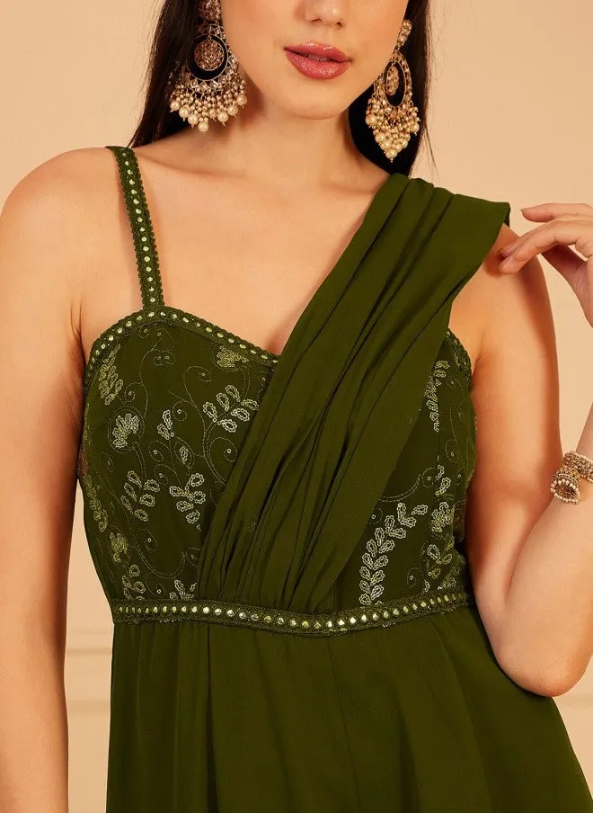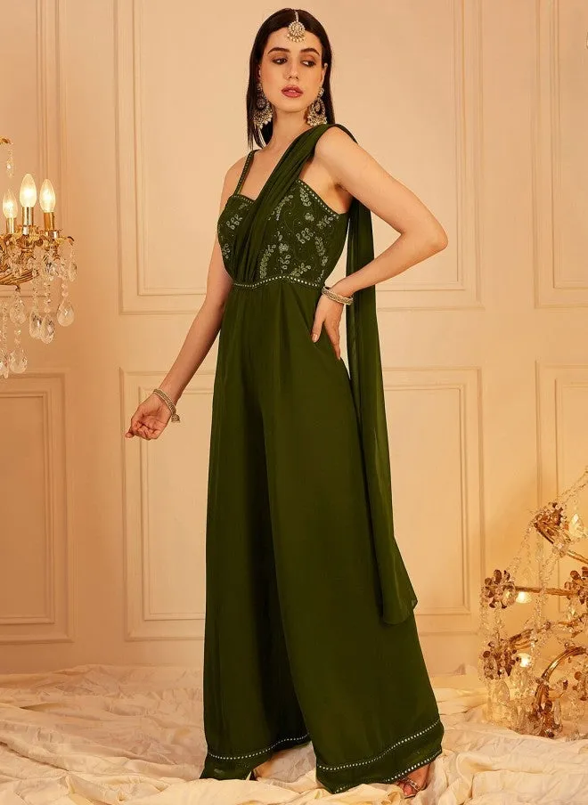 Olive Green Self Design Basic Jumpsuit for Women