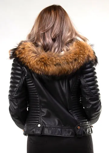 Women’s Leather Asymmetric Biker Jacket in Cognac Brown