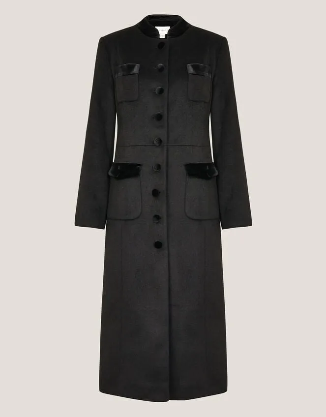 Viv Velvet Trim Military Coat Black